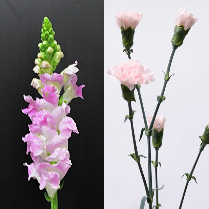 スナップとスプレーカーネーションを主とした旬のお花セットです。
