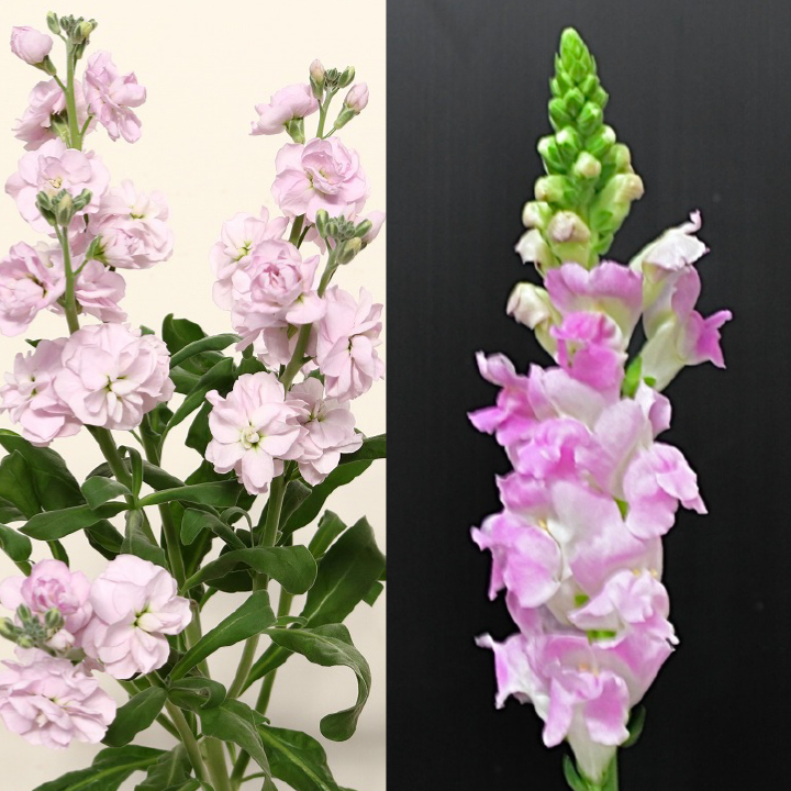 まっすぐ伸びた茎、金魚に似たふっくらとした花形、鮮明な色彩が特徴です。。